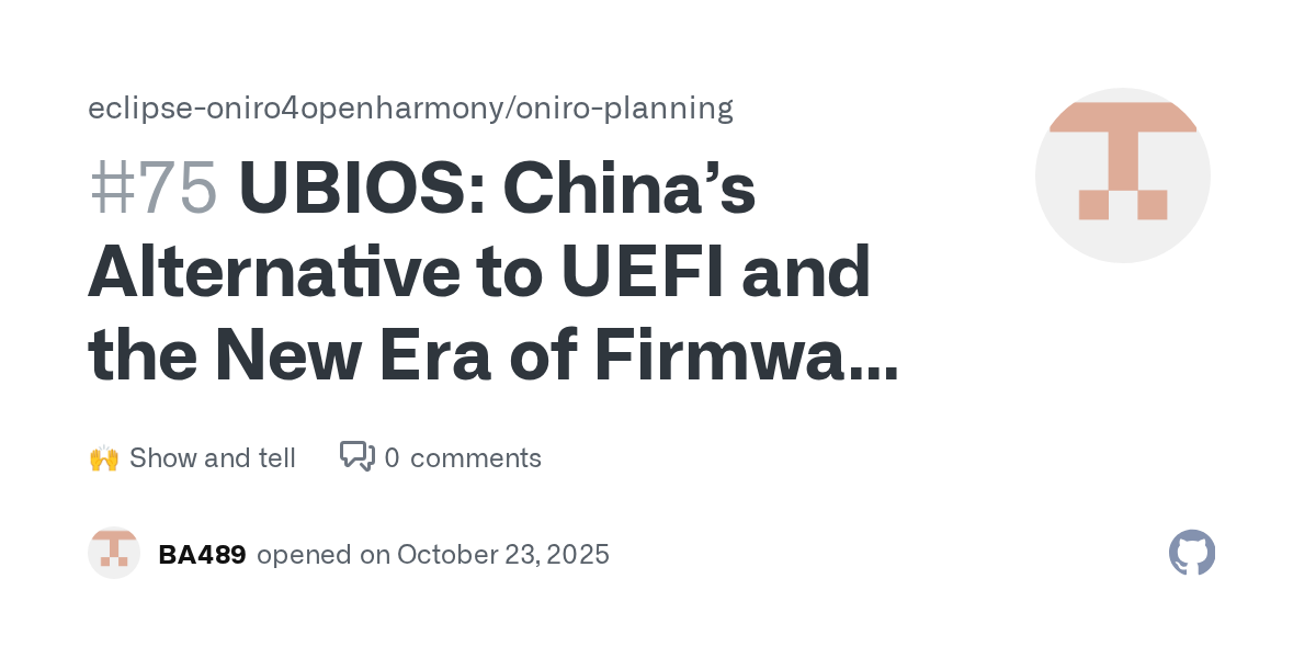 Various pages(*) report that there is a new Chinese standard coming up competeing with UEFI and possibly TPM. Meant to be a unified boot process and inlcuding various keys and IDs to identify hardware, software and user.