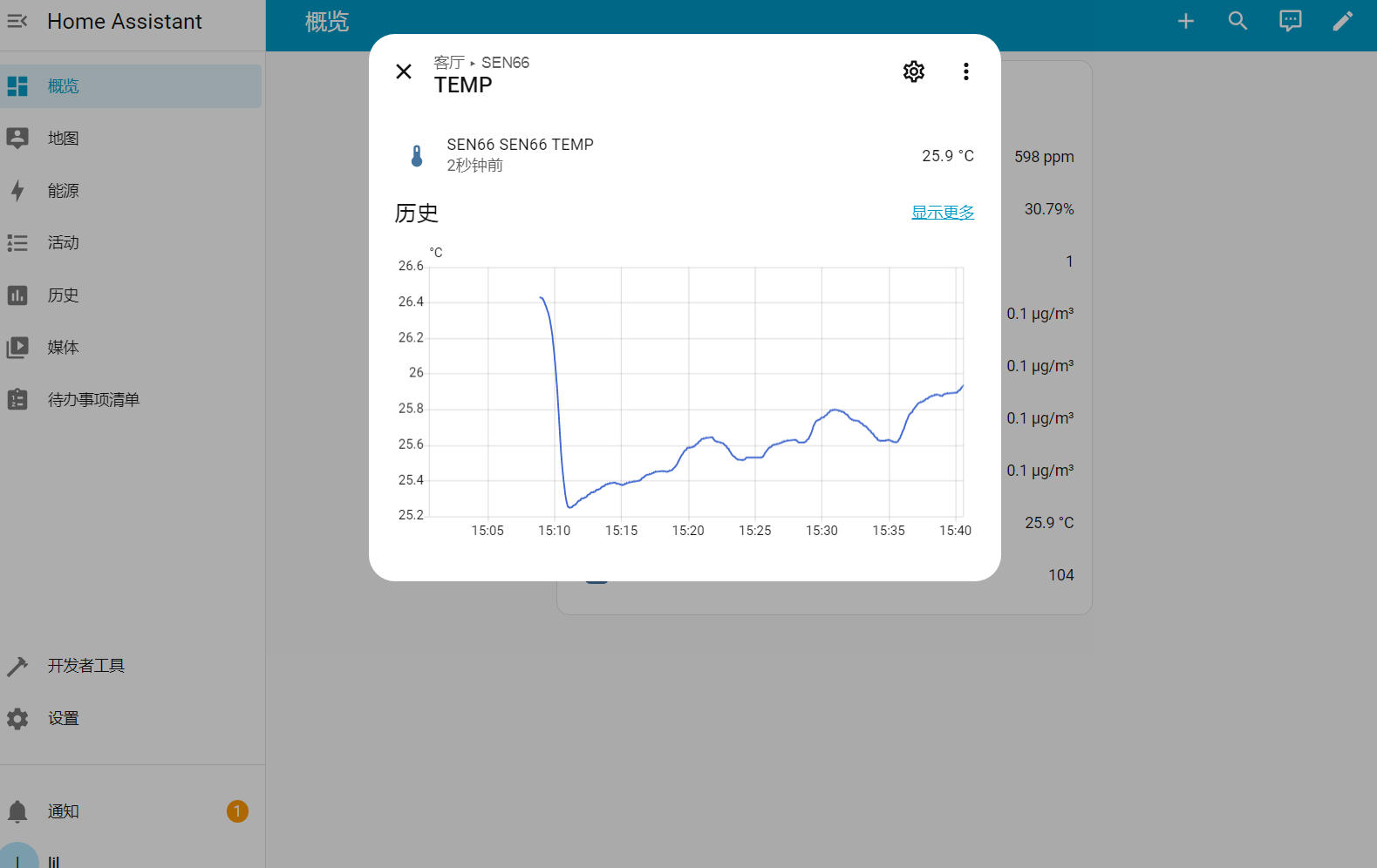 进入 概览 页面,刷新网页,可获得实时传感器数据
